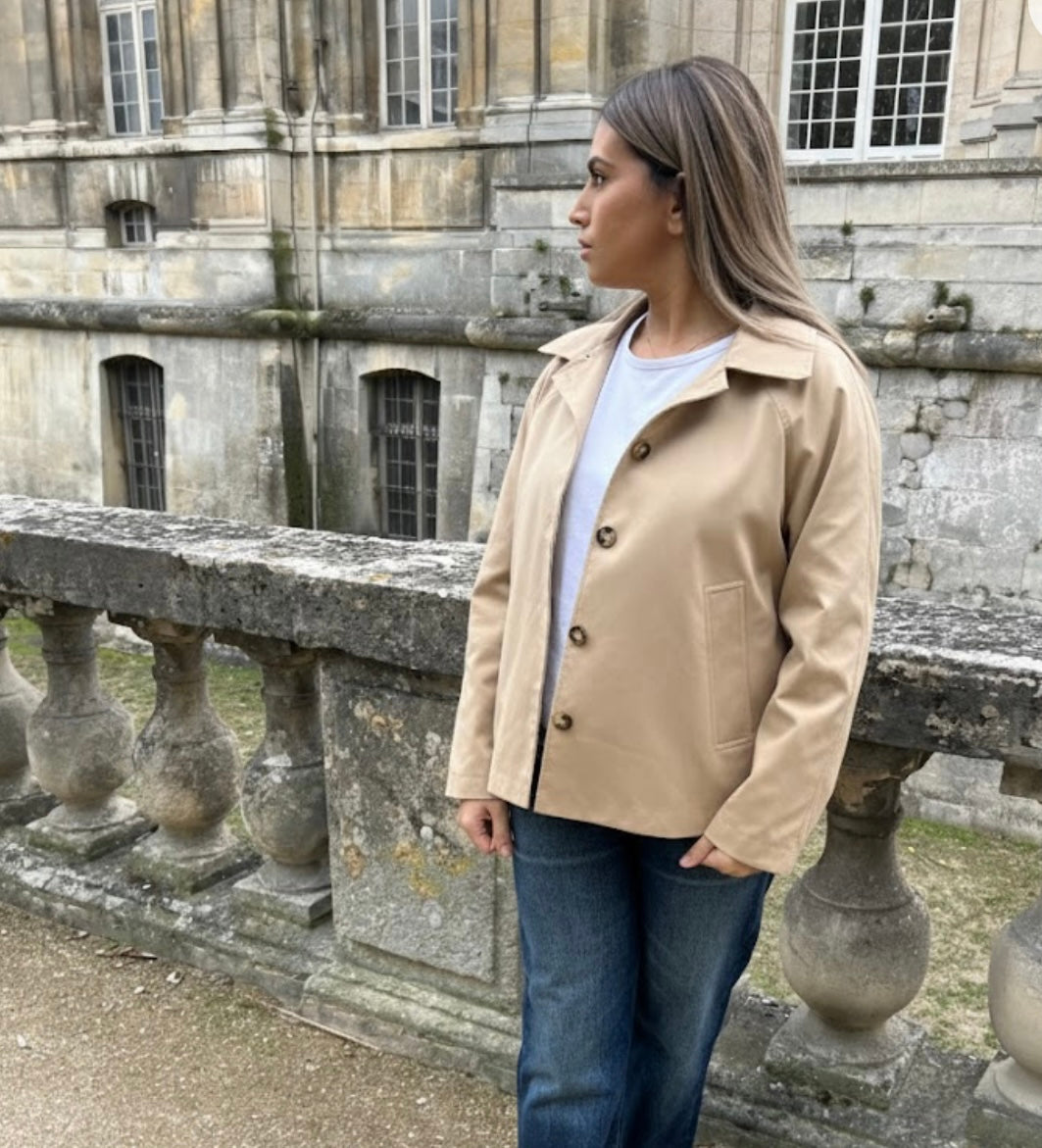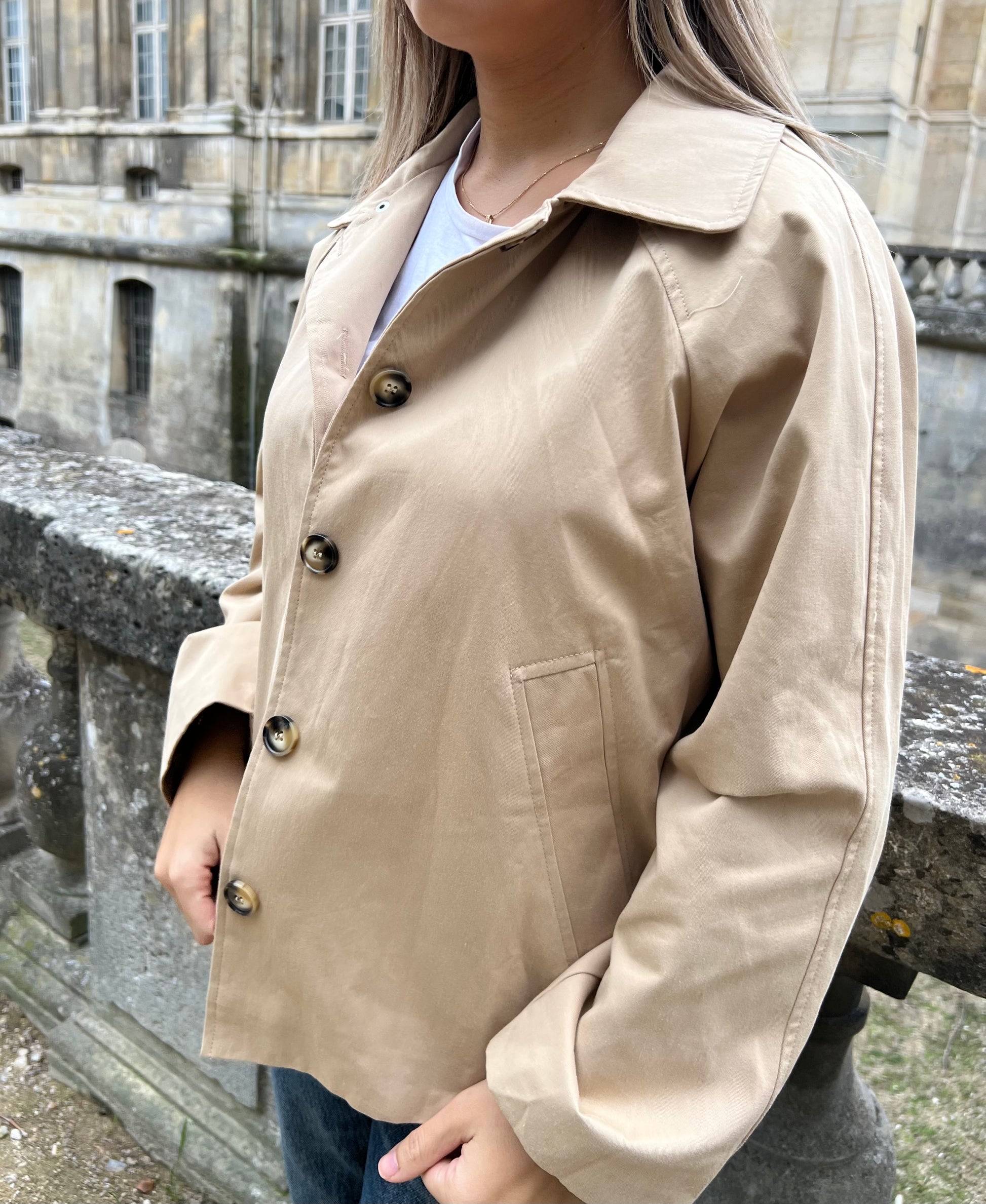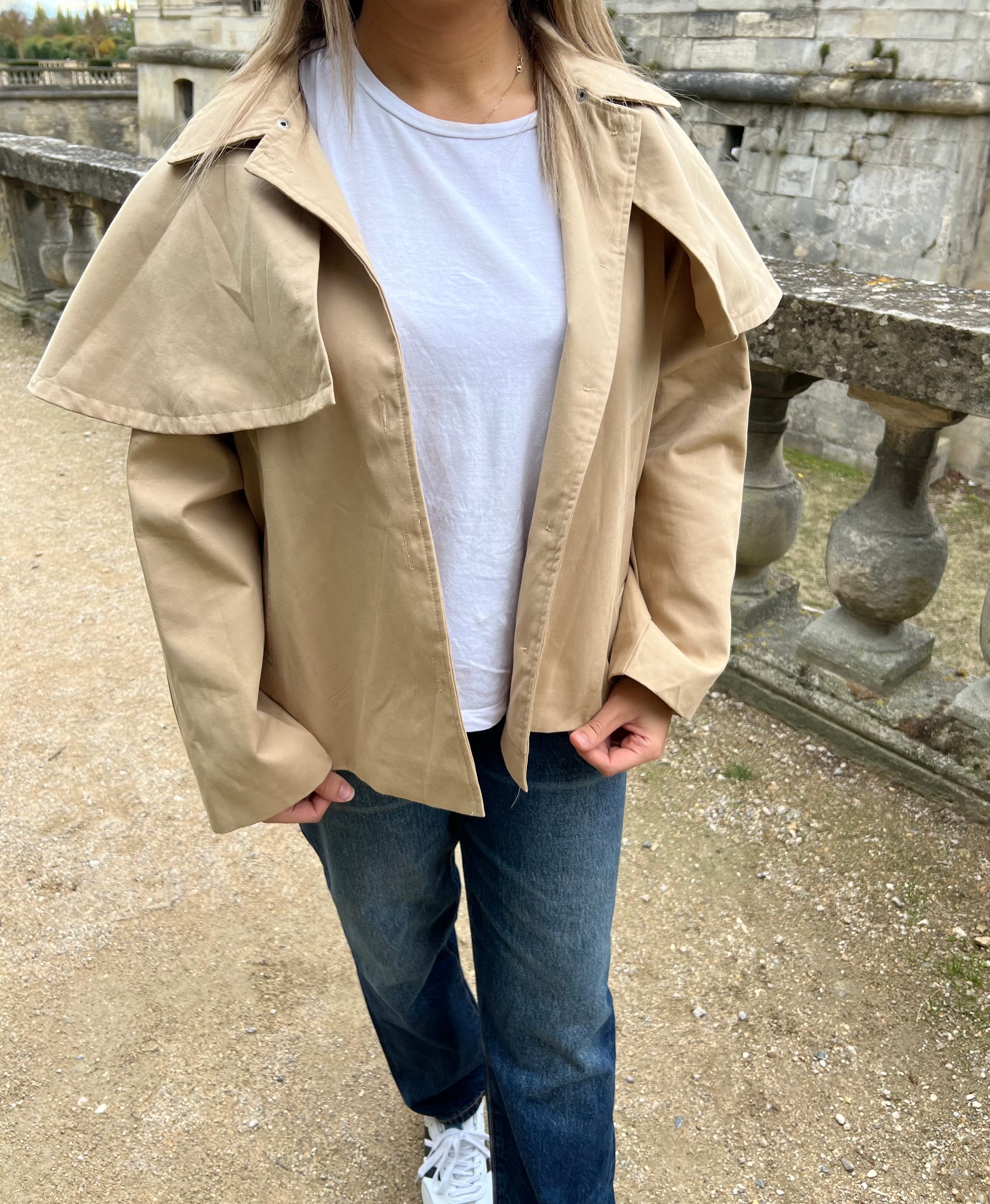 2. Sans la cape : Un trench court classique et épuré, idéal pour la mi-saison.